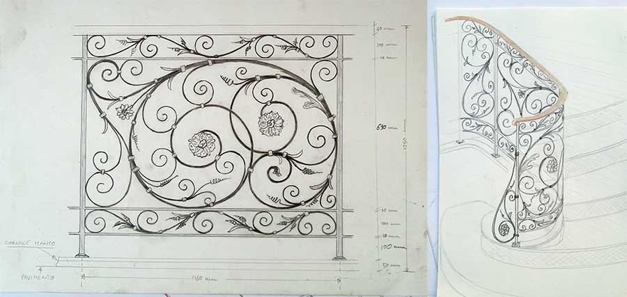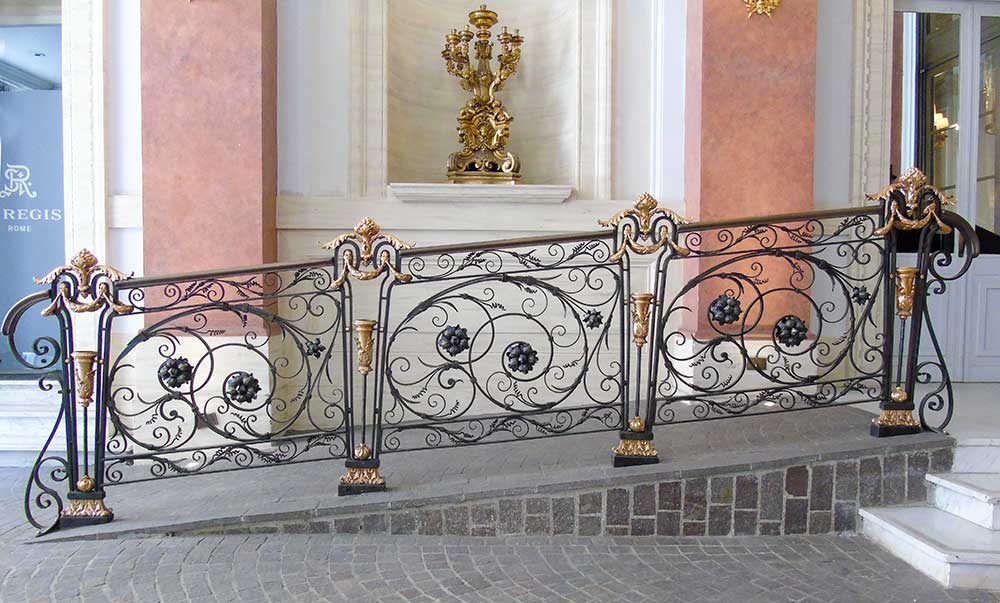 Ringhiere in ferro battuto ,copia delle esistenti in loco ( Hotel San Regis Rome) realizzate in collaborazione con Martino Stenico e Bi.Bi.Ci.