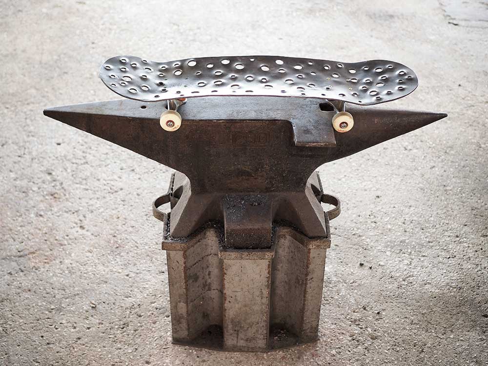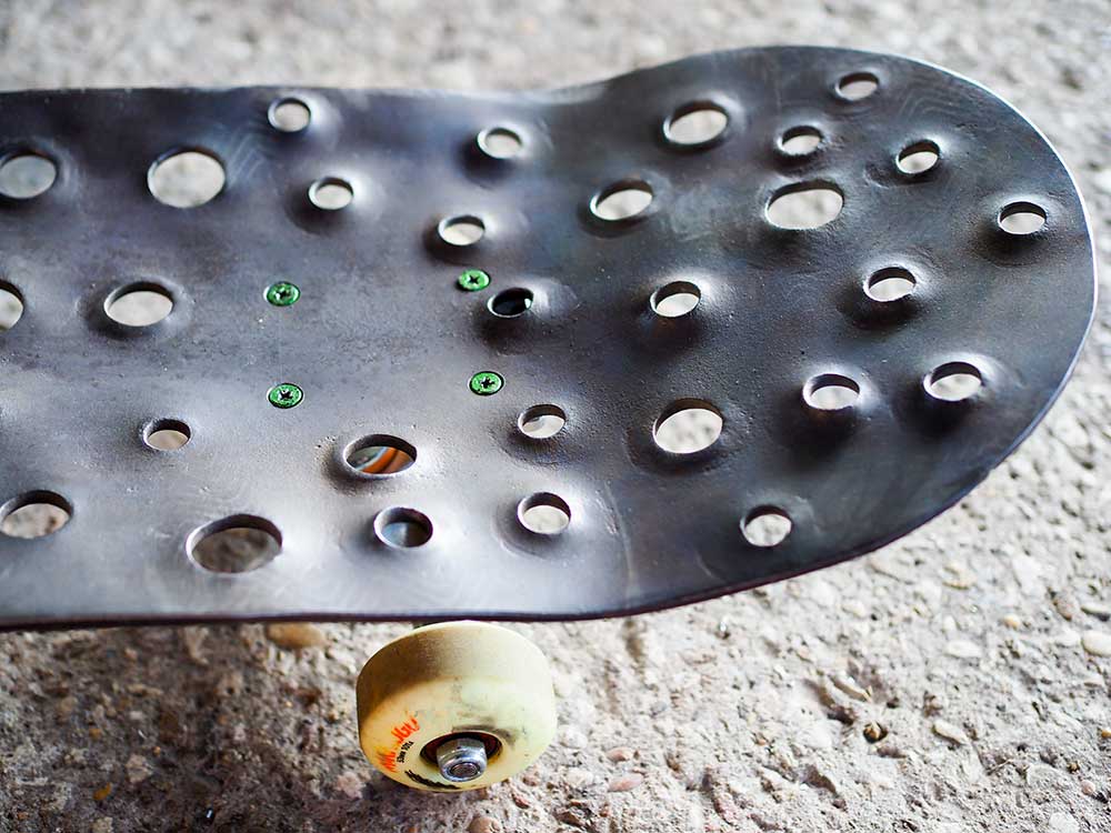 2. Street skate in titanio forgiato, i fori deformati a caldo vanno a fungere da grip